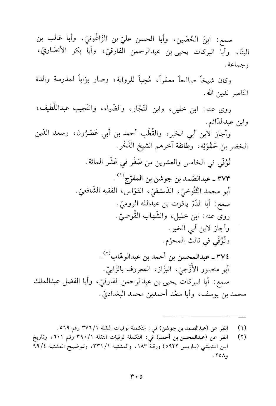 [2] انظر عن (عبد المحسن بن أحمد) في: التكملة لوفيات النقلة 1/ 390 رقم 601، وتاريخ ابن الدبيثي (باريس 5922) ورقة 183، والمشتبه 1/ 331، وتوضيح المشتبه 4/ 99 و 258.