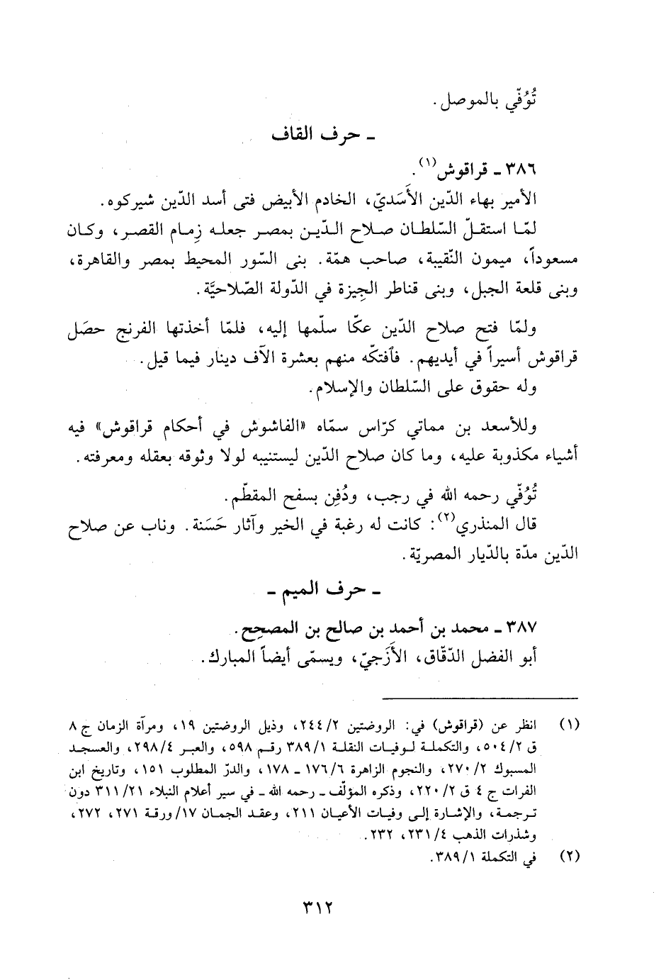 [1] انظر عن (قراقوش) في: الروضتين 2/ 244، وذيل الروضتين 19، ومرآة الزمان ج 8 ق 2/ 504، والتكملة لوفيات النقلة 1/ 389 رقم 598، والعبر 4/ 298، والعسجد المسبوك 2/ 270، والنجوم الزاهرة 6/ 176- 178، والدرّ المطلوب 151، وتاريخ ابن الفرات ج 4 ق 2/ 220، وذكره المؤلّف- رحمه الله- في سير أعلام النبلاء 21/ 311 دون ترجمة، والإشارة إلى وفيات الأعيان 211، وعقد الجمان 17/ ورقة 271، 272، وشذرات الذهب 4/ 231، 232.