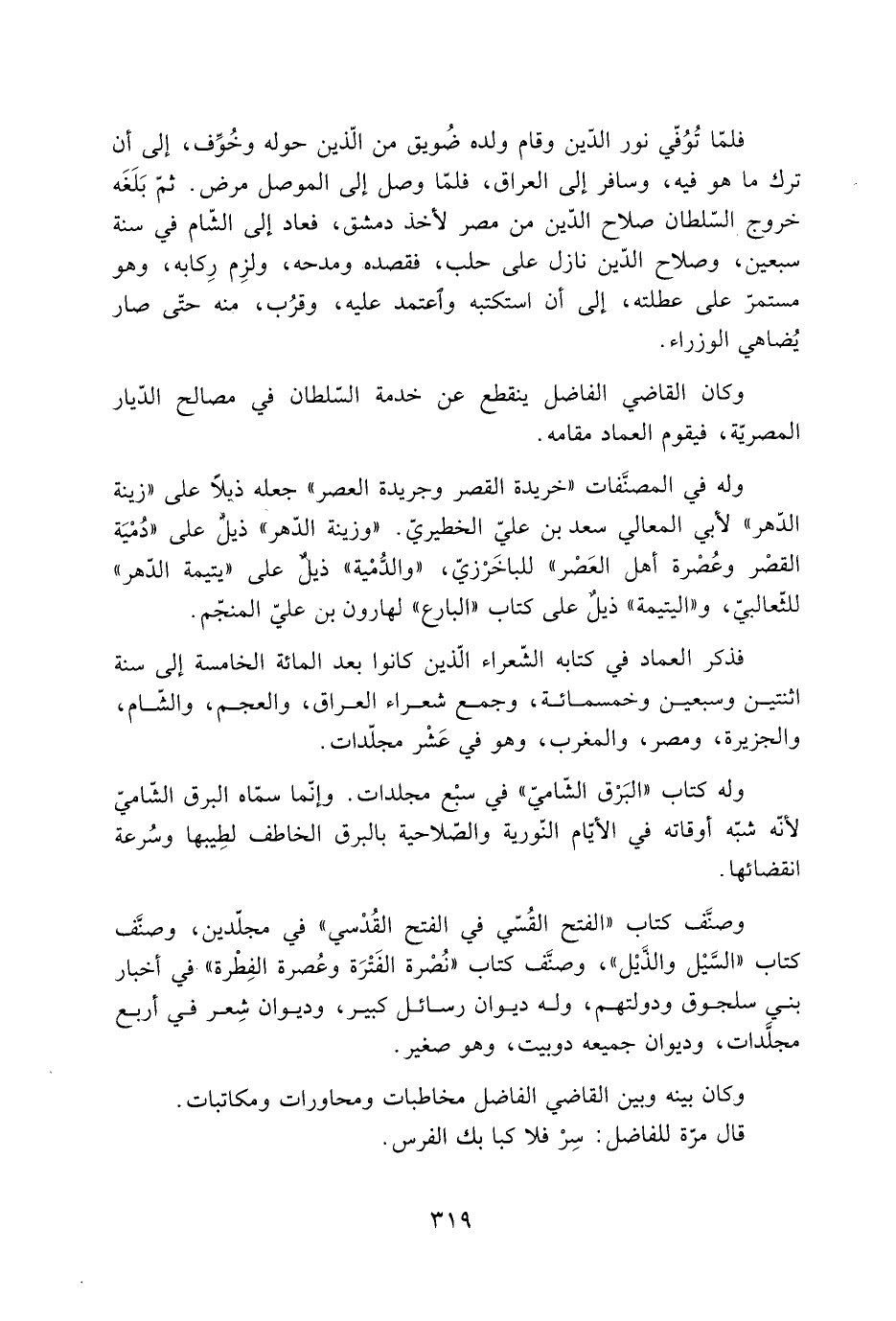 فذكر العماد فِي كتابه الشّعراء الّذين كانوا بعد المائة الخامسة إِلَى سنة اثنتين وسبعين وخمسمائة، وجمع شعراء العراق، والعجم، والشّام، والجزيرة، ومصر، والمغرب، وهو فِي عَشْر مجلّدات.