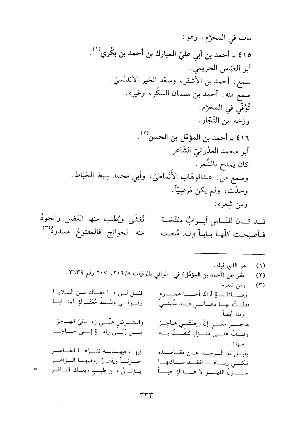 [2] انظر عن (أحمد بن المؤمّل) في: الوافي بالوفيات 8/ 206، 207 رقم 3639.