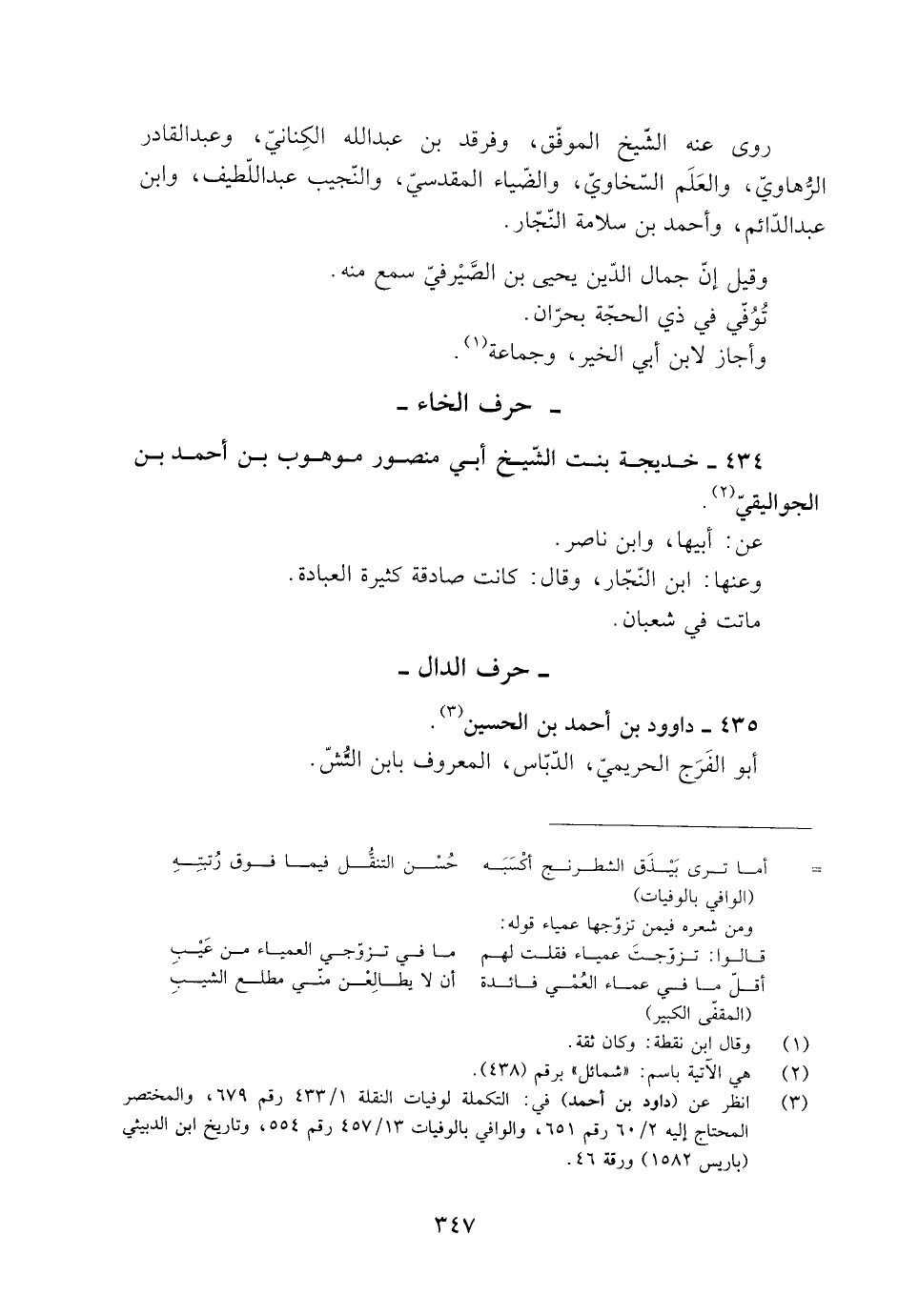 [3] انظر عن (داود بن أحمد) في: التكملة لوفيات النقلة 1/ 433 رقم 679، والمختصر المحتاج إليه 2/ 60 رقم 651، والوافي بالوفيات 13/ 457 رقم 554، وتاريخ ابن الدبيثي (باريس 1582) ورقة 46.