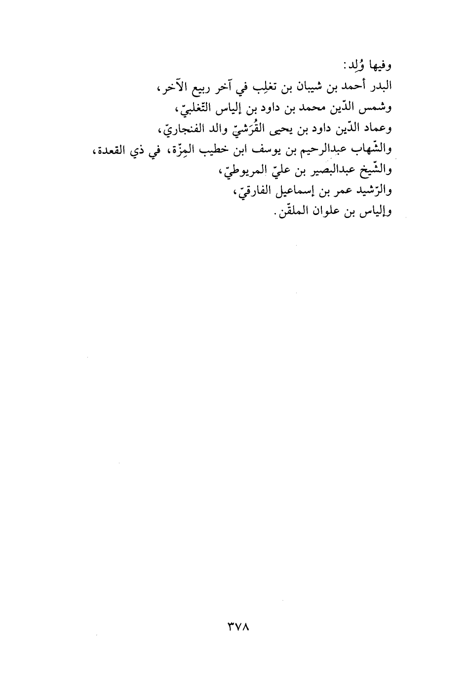 البدر أَحْمَد بْن شَيْبَان بْن تغلِب فِي آخر ربيع الآخر، وشمس الدّين مُحَمَّد بْن دَاوُد بْن إلياس التّغلبيّ، وعماد الدّين دَاوُد بْن يحيى القُرَشيّ والد الفنجاريّ، والشّهاب عَبْد الرحيم بْن يوسف ابن خطيب المِزَّة، فِي ذي القعدة، والشّيخ عَبْد البصير بْن عليّ المريوطيّ، والرّشيد عُمَر بْن إِسْمَاعِيل الفارقيّ، وإلياس بْن علوان الملقّن.