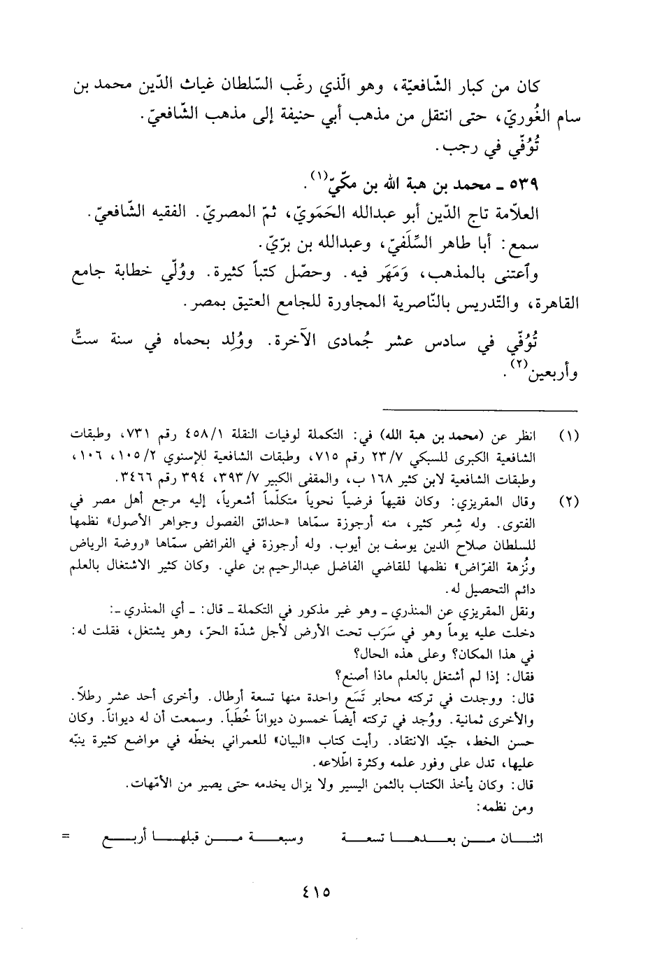 [1] انظر عن (محمد بن هبة الله) في: التكملة لوفيات النقلة 1/ 458 رقم 731، وطبقات الشافعية الكبرى للسبكي 7/ 23 رقم 715، وطبقات الشافعية للإسنويّ 2/ 105، 106، وطبقات الشافعية لابن كثير 168 ب، والمقفى الكبير 7/ 393، 394 رقم 3466.