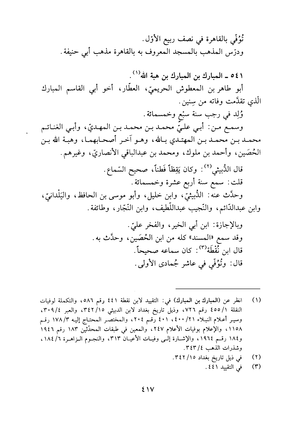 541- الْمُبَارَك بْن الْمُبَارَك بْن هِبةِ اللَّه [1] .