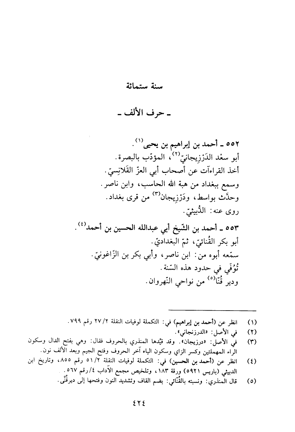 [4] انظر عن (أحمد بن الحسين) في: التكملة لوفيات النقلة 2/ 51 رقم 855، وتاريخ ابن الدبيثي (باريس 5921) ورقة 183، وتلخيص مجمع الآداب 4/ رقم 567.
