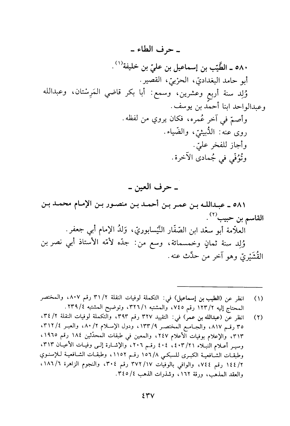581- عَبْد اللَّه بْن عُمَر بْن أَحْمَد بْن مَنْصُور بْن الْإِمَام مُحَمَّد بْن القَاسِم بْن حبيب [2] .