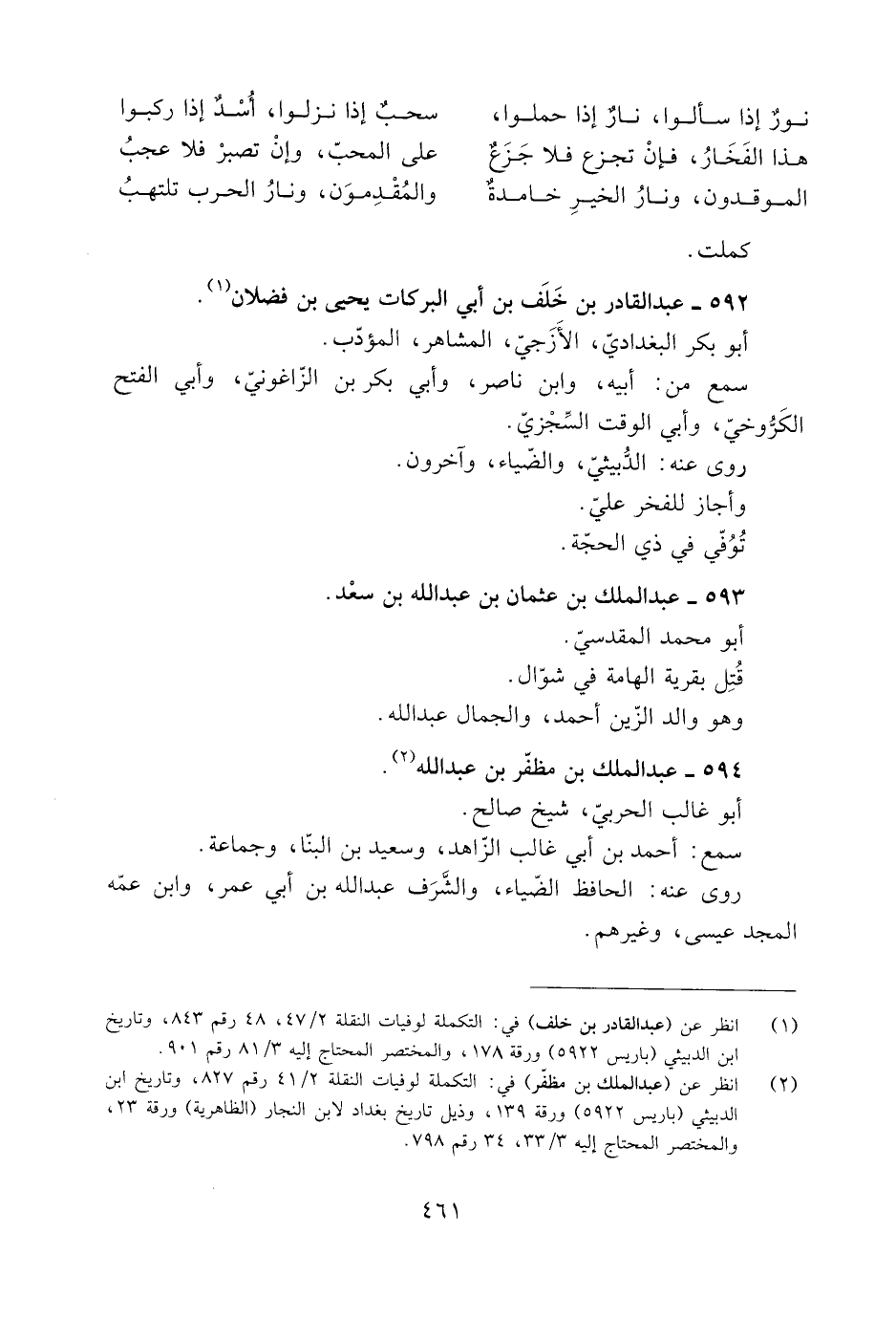 [1] انظر عن (عبد القادر بن خلف) في: التكملة لوفيات النقلة 2/ 47، 48 رقم 843، وتاريخ ابن الدبيثي (باريس 5922) ورقة 178، والمختصر المحتاج إليه 3/ 81 رقم 901.