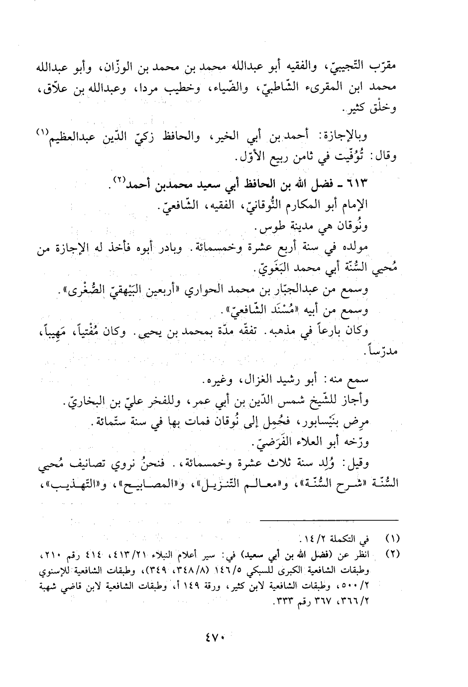[2] انظر عن (فضل الله بن أبي سعيد) في: سير أعلام النبلاء 21/ 413، 414 رقم 210، وطبقات الشافعية الكبرى للسبكي 5/ 146 (8/ 348، 349) ، وطبقات الشافعية للإسنويّ 2/ 500، وطبقات الشافعية لابن كثير، ورقة 149 أ، وطبقات الشافعية لابن قاضي شهبة 2/ 366، 367 رقم 333.
