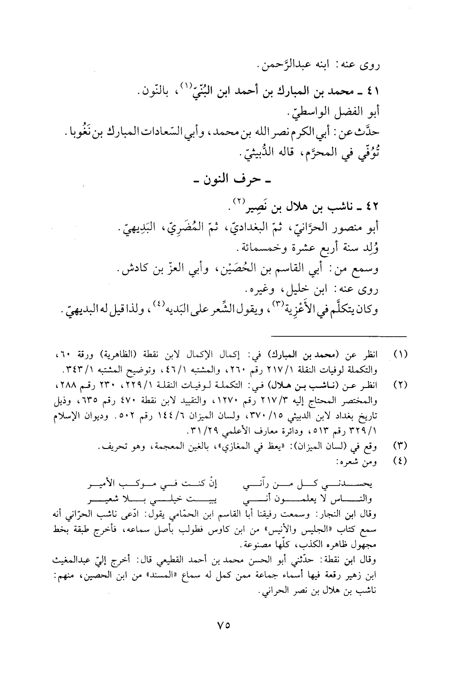 [2] انظر عن (ناشب بن هلال) في: التكملة لوفيات النقلة 1/ 229، 230 رقم 288، والمختصر المحتاج إليه 3/ 217 رقم 1270، والتقييد لابن نقطة 470 رقم 635، وذيل تاريخ بغداد لابن الدبيثي 15/ 370، ولسان الميزان 6/ 144 رقم 502. وديوان الإسلام 1/ 329 رقم 513، ودائرة معارف الأعلمي 29/ 31.