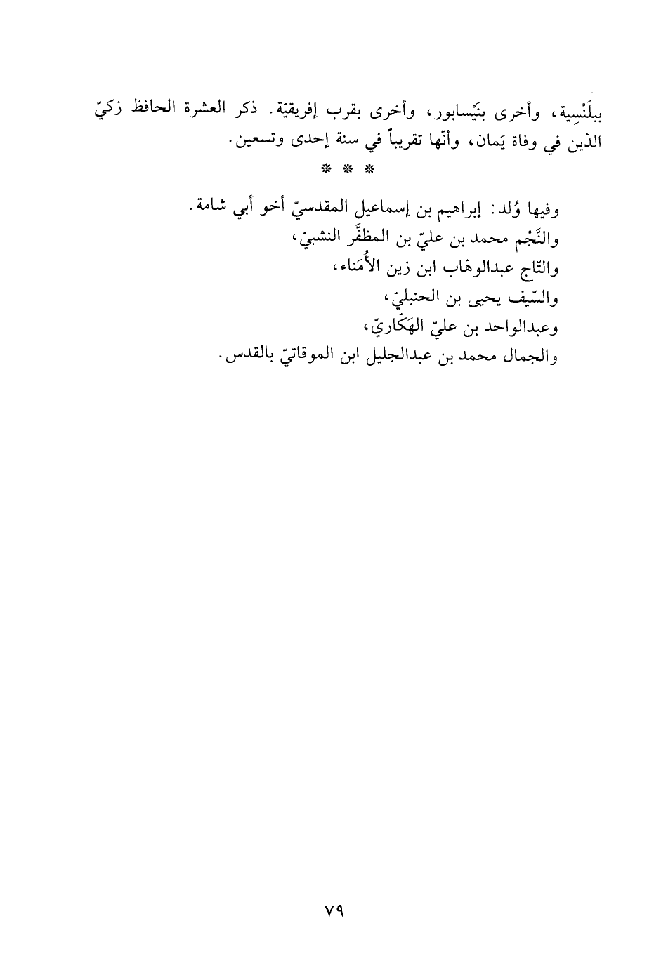 وفيها وُلد: إِبْرَاهِيم بْن إِسْمَاعِيل المقدسيّ أخو أَبي شامة.
