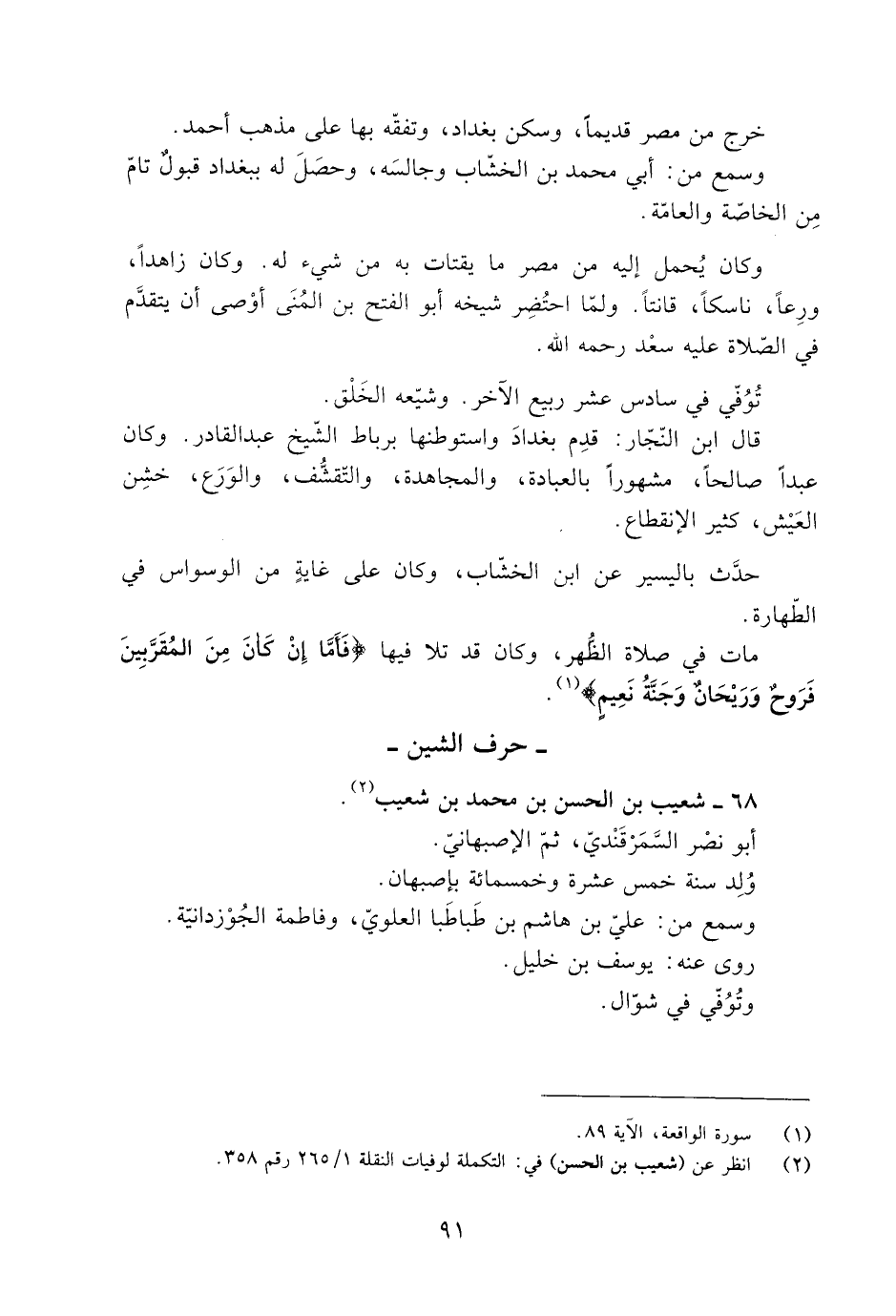 [2] انظر عن (شعيب بن الحسن) في: التكملة لوفيات النقلة 1/ 265 رقم 358.