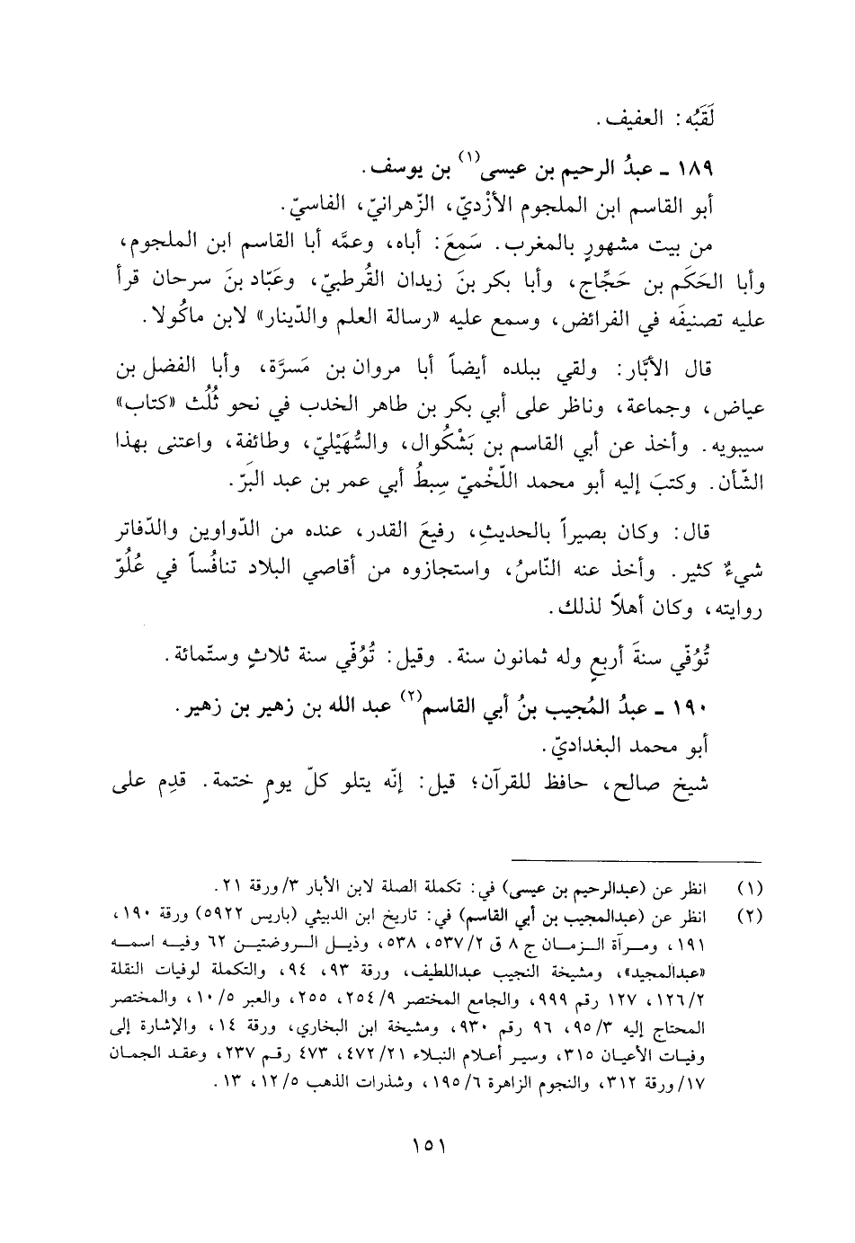 [1] انظر عن (عبد الرحيم بن عيسى) في: تكملة الصلة لابن الأبار 3/ ورقة 21.