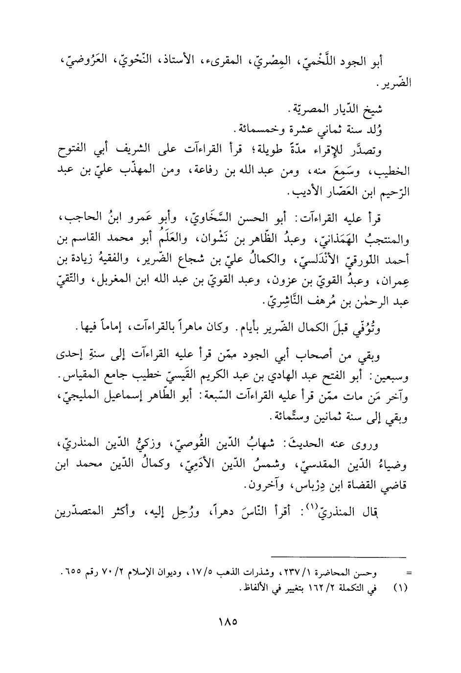 قَالَ المنذريّ [1] : أقرأ النّاسَ دهرا، ورحل إليه، وأكثر المتصدّرين