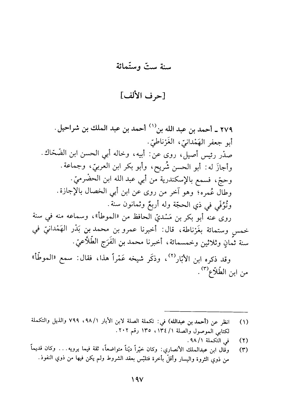 [1] انظر عن (أحمد بن عبد الله) في: تكملة الصلة لابن الأبار 1/ 98، 799 والذيل والتكملة لكتابي الموصول والصلة 1/ 134، 135 رقم 202.