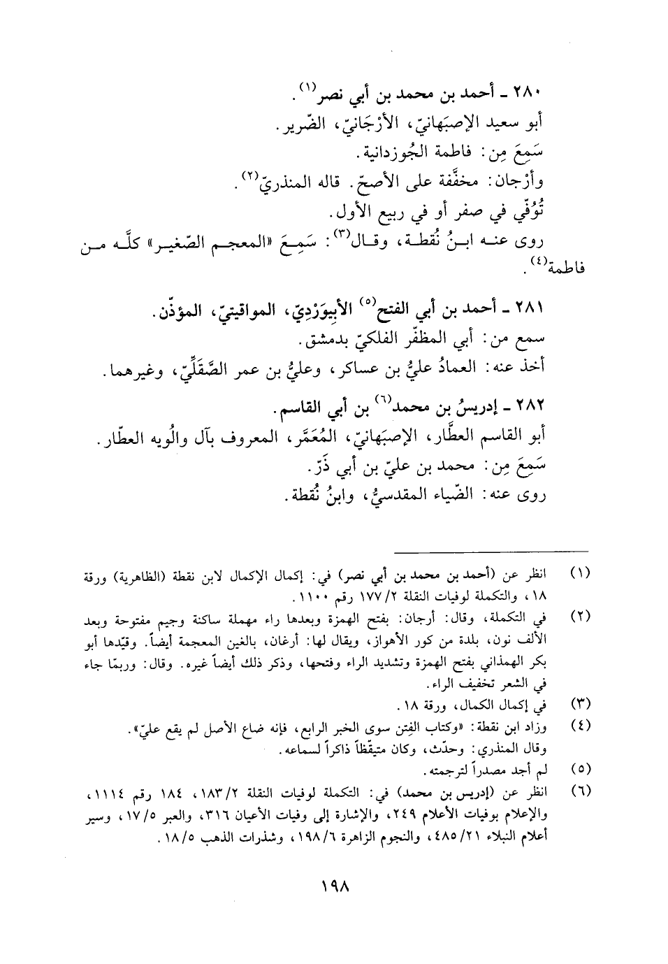 [1] انظر عن (أحمد بن محمد بن أبي نصر) في: إكمال الإكمال لابن نقطة (الظاهرية) ورقة 18، والتكملة لوفيات النقلة 2/ 177 رقم 1100.