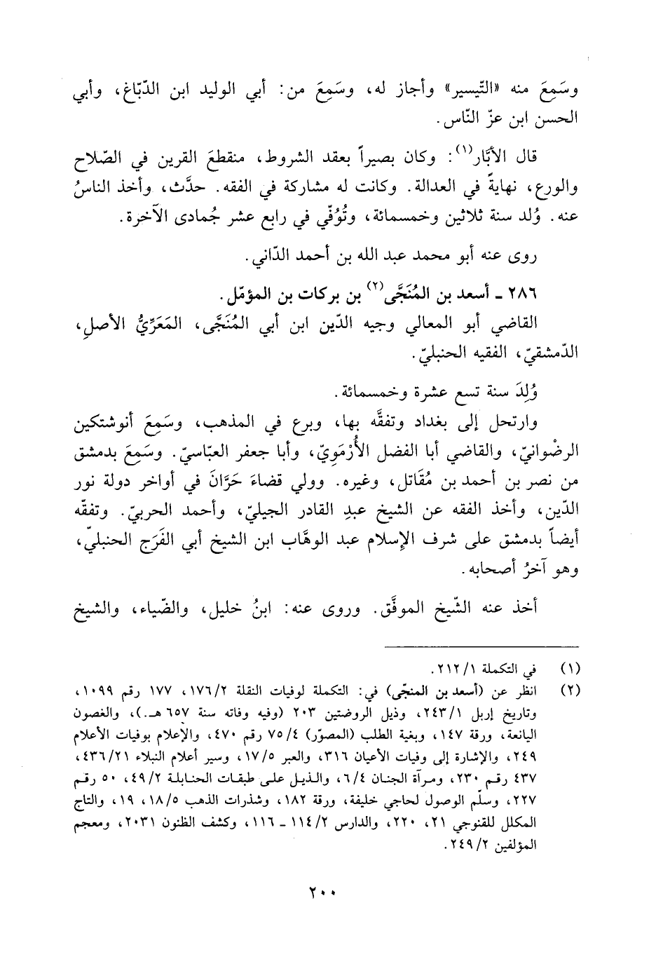 286- أسعد بْن المُنَجَّى [2] بْن بركات بْن المؤمّل.
