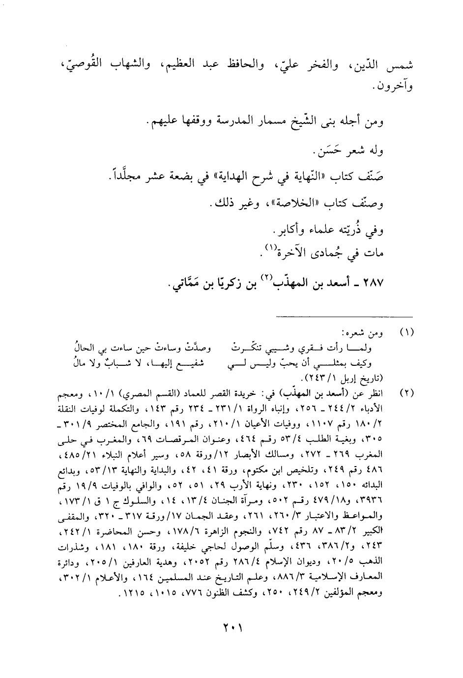 287- أسعد بْن المهذّب [2] بْن زكريّا بن ممّاتي.