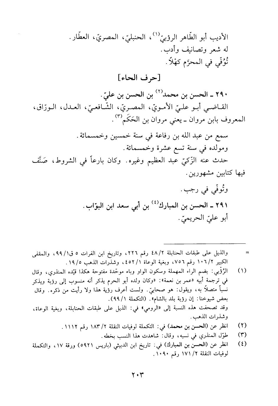 [4] انظر عن (الحسن بن المبارك) في: تاريخ ابن الدبيثي (باريس 5921) ورقة 17، والتكملة لوفيات النقلة 2/ 171 رقم 1090.