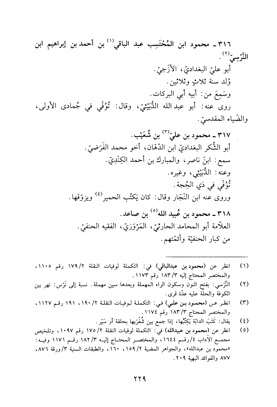 316- محمود ابن المُحْتَسِب عَبْد الباقي [1] بْن أَحْمَد بْن إِبْرَاهيم ابن النَّرْسِيّ [2] .