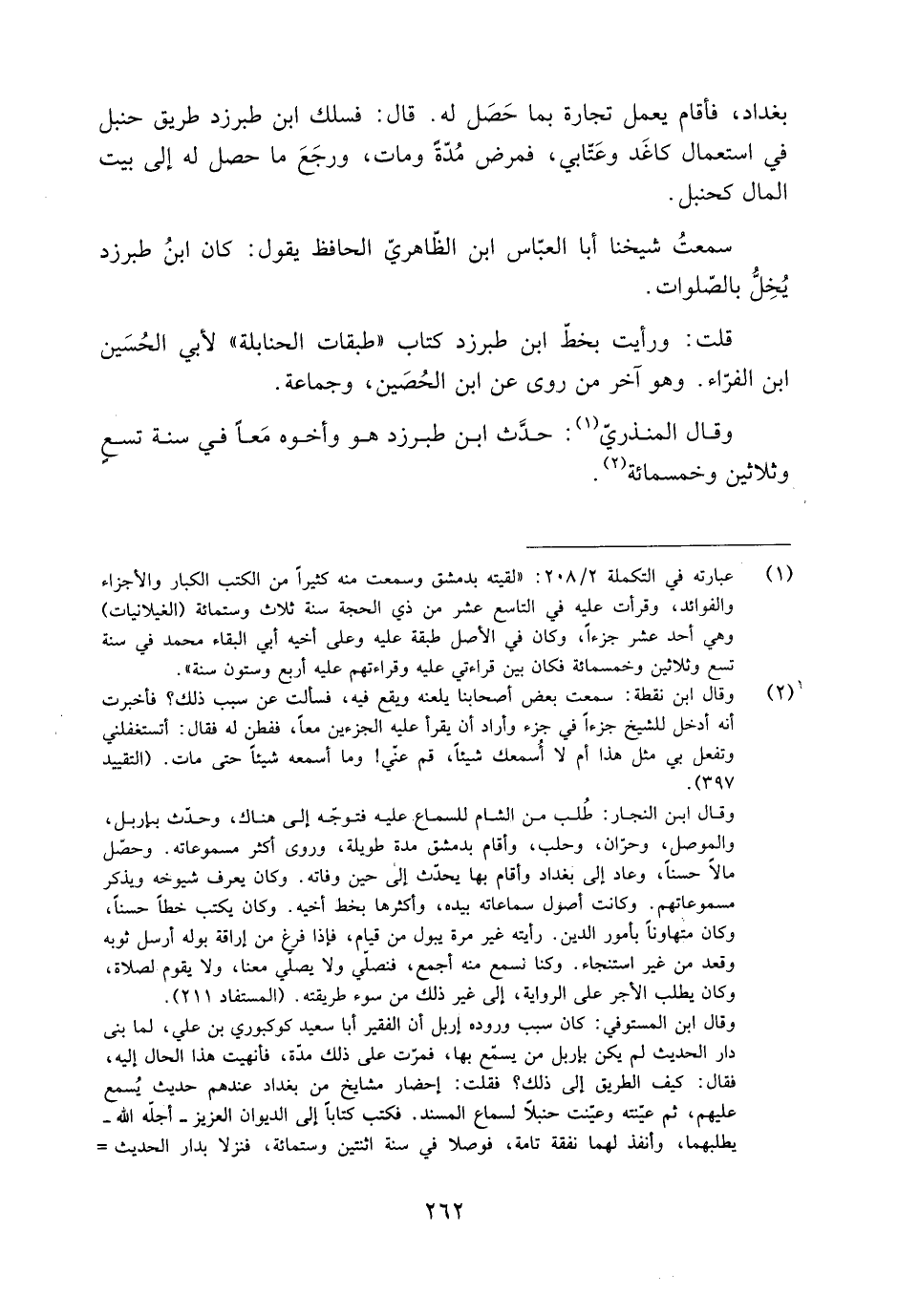 قلت: ورأيت بخطّ ابن طبرزد كتاب «طبقات الحنابلة» لأبي الحسين ابن الفرّاء. وهو آخِرُ مَن روى عَنِ ابن الحُصَيْن، وجماعة.