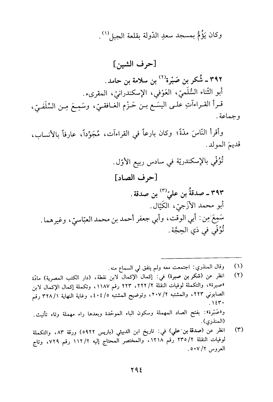 [2] انظر عن (شكر بن صبرة) في: إكمال الإكمال لابن نقطة، (دار الكتب المصرية) مادّة «صبرة» ، والتكملة لوفيات النقلة 2/ 222، 223 رقم 1187، وتكملة إكمال الإكمال لابن الصابوني 223، والمشتبه 2/ 207، وتوضيح المشتبه 5/ 404، وغاية النهاية 1/ 328 رقم 1430.