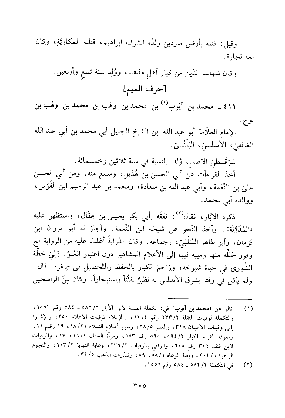 [1] انظر عن (محمد بن أيوب) في: تكملة الصلة لابن الأبار 2/ 582- 584 رقم 1556، والتكملة لوفيات النقلة 2/ 233 رقم 1214، والإعلام بوفيات الأعلام 250، والإشارة إلى وفيات الأعيان 318، والعبر 5/ 28، وسير أعلام النبلاء 21/ 18، 19 رقم 11، ومعرفة القراء الكبار 2/ 594، 595 رقم 553، ومرآة الجنان 4/ 16، 17، والوفيات لابن قنفذ 304 رقم 608، والوافي بالوفيات 2/ 239، وغاية النهاية 2/ 103، والنجوم الزاهرة 6/ 204، وبغية الوعاة 1/ 58، 59، وشذرات الذهب 5/ 34.