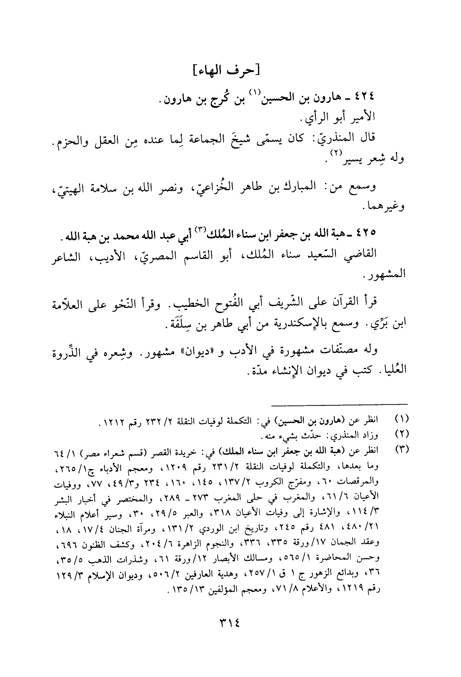 425- هبة الله بن جعفر ابن سناء المُلك [3] أَبِي عَبْد الله مُحَمَّد بْن هبة الله.