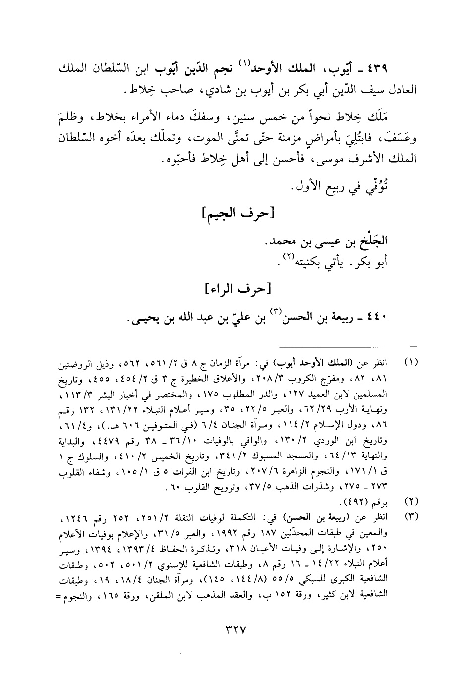 439- أيّوب، الملك الأوحد [1] نجم الدّين أيّوب ابن السلطان الملك العادل سيف الدين أبي بَكْر بْن أيوب بْن شادي، صاحب خِلاط.
