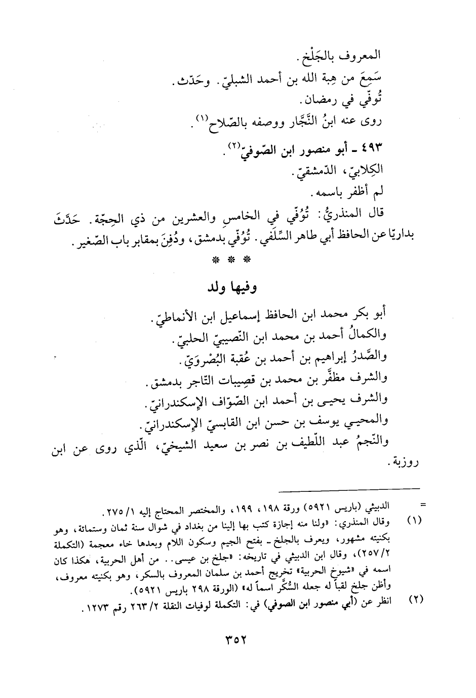 [2] انظر عن (أبي منصور ابن الصوفي) في: التكملة لوفيات النقلة 2/ 263 رقم 1273.