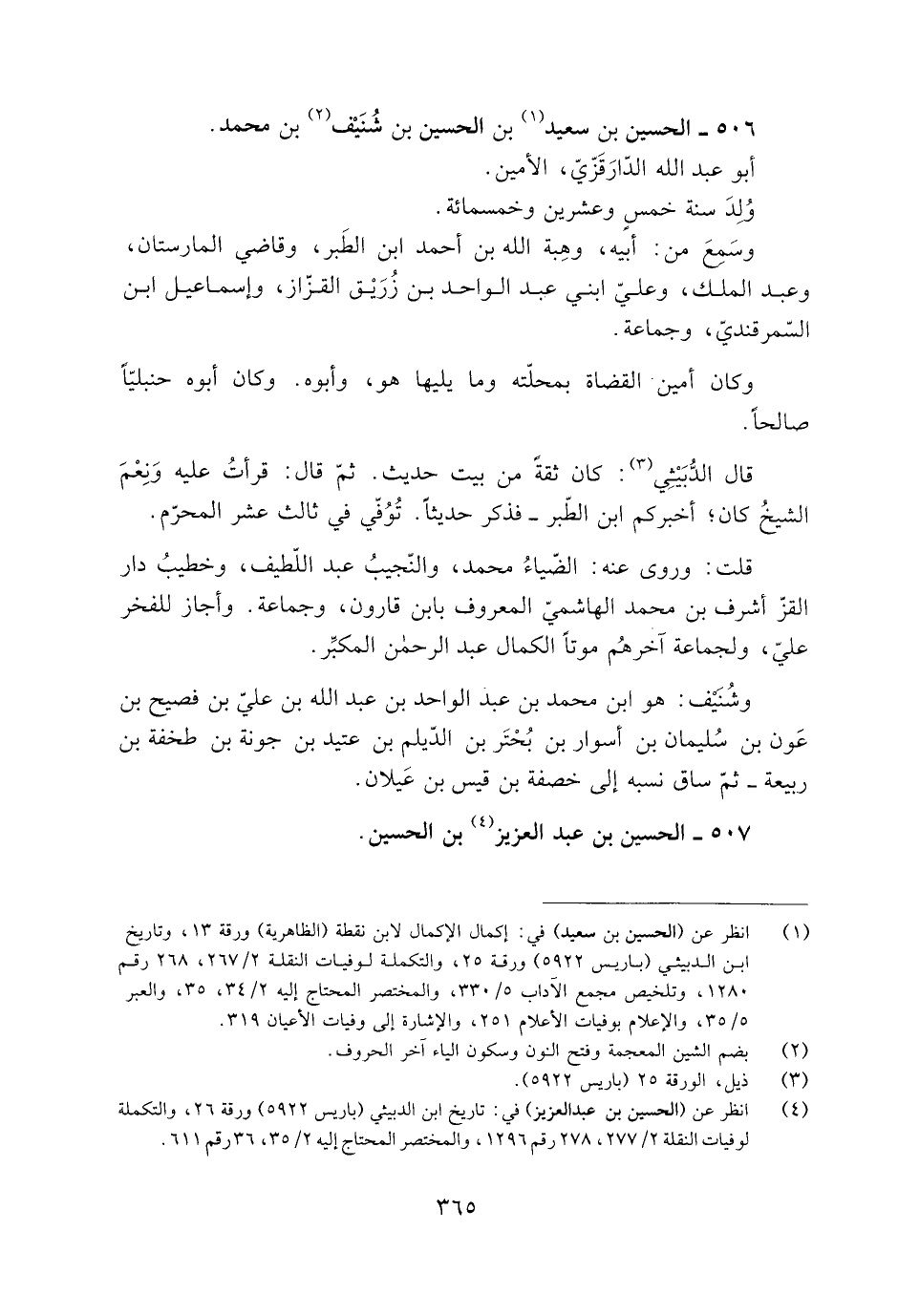 506- الحسين بن سعيد [1] بن الحسين بن شنيف [2] بن محمد.