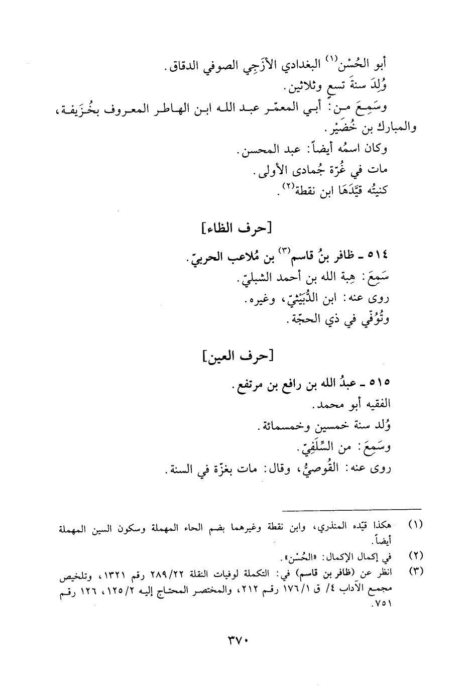 [1] هكذا قيّده المنذري، وابن نقطة وغيرهما بضم الحاء المهملة وسكون السين المهملة أيضا.