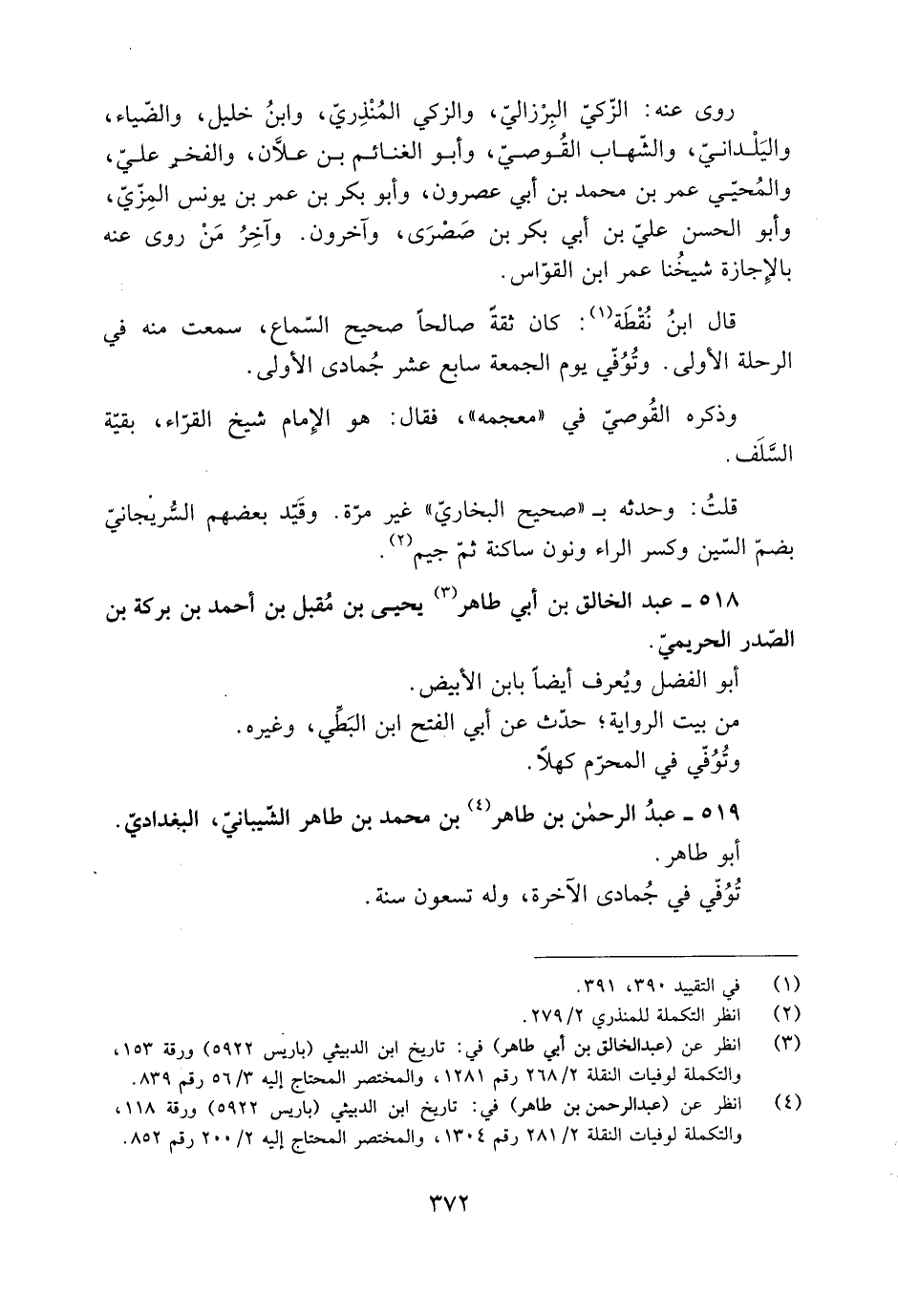 [4] انظر عن (عبد الرحمن بن طاهر) في: تاريخ ابن الدبيثي (باريس 5922) ورقة 118، والتكملة لوفيات النقلة 2/ 281 رقم 1304، والمختصر المحتاج إليه 2/ 200 رقم 852.