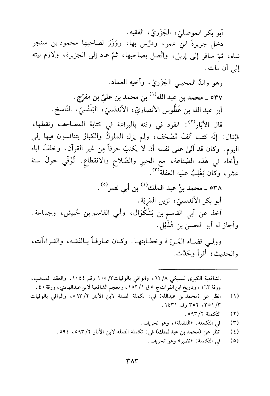 538- محمد بن عبد الملك [4] بن أبي نصر [5] .