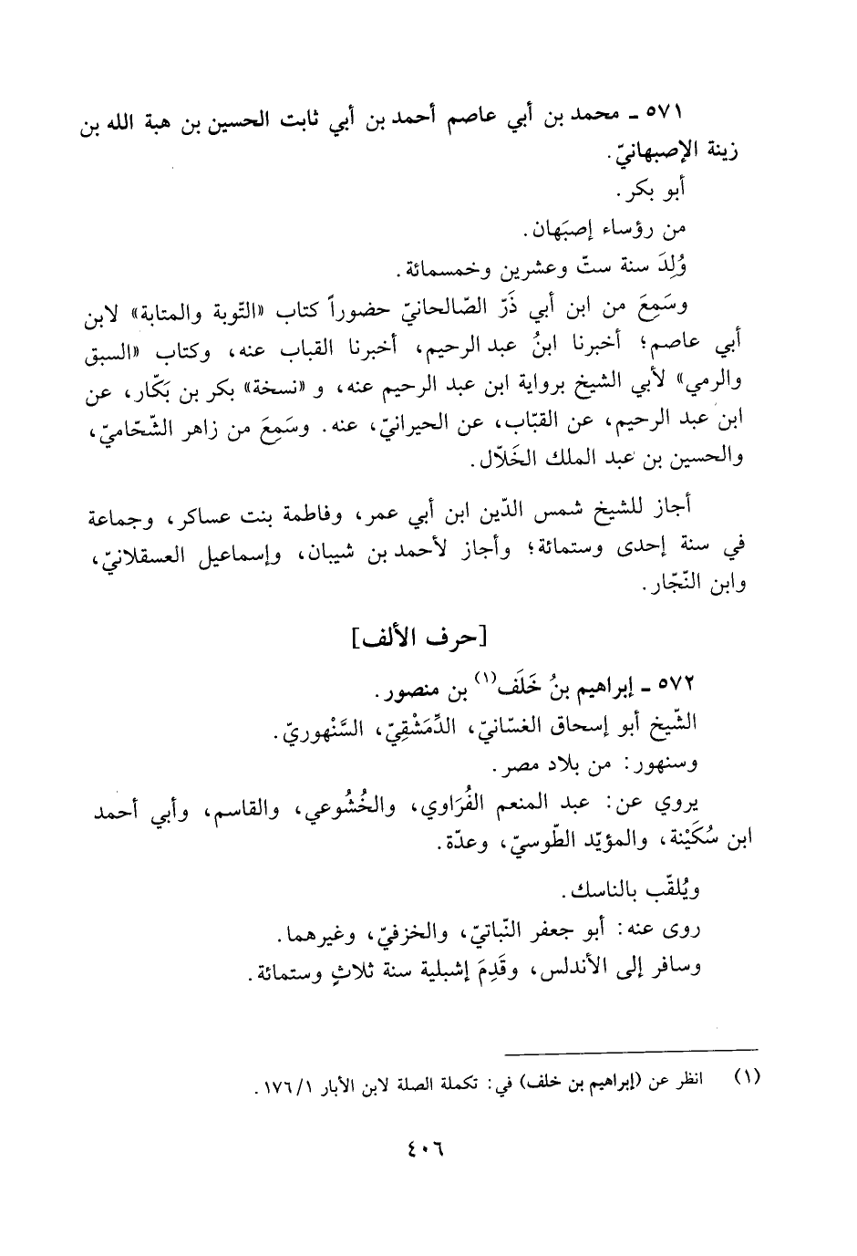 571- محمد بن أبي عاصم أحمد بن أبي ثابت الحسين بن هبة الله بن زينة الأصبهانيّ.