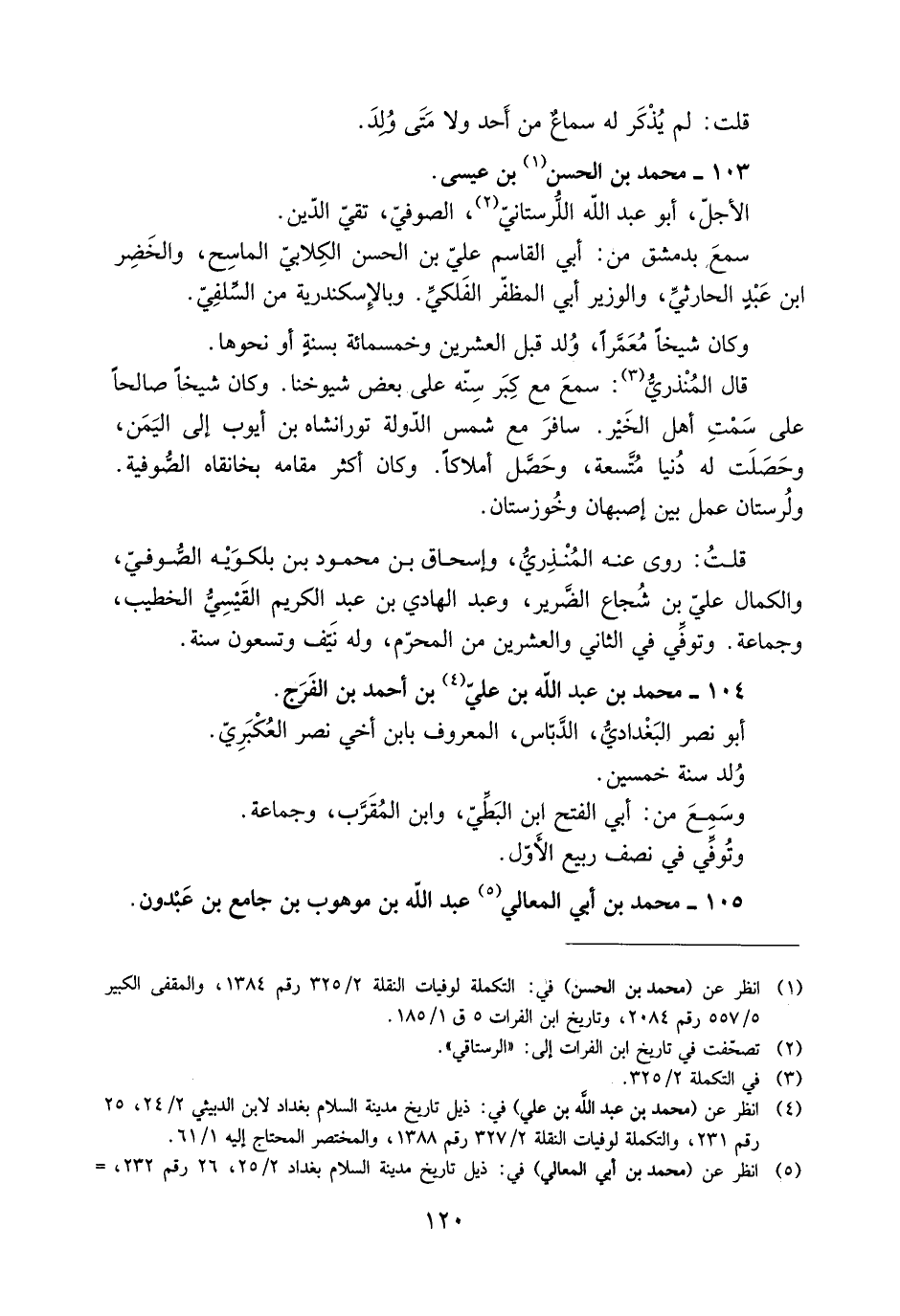 [5] انظر عن (محمد بن أبي المعالي) في: ذيل تاريخ مدينة السلام بغداد 2/ 25، 26 رقم 232،