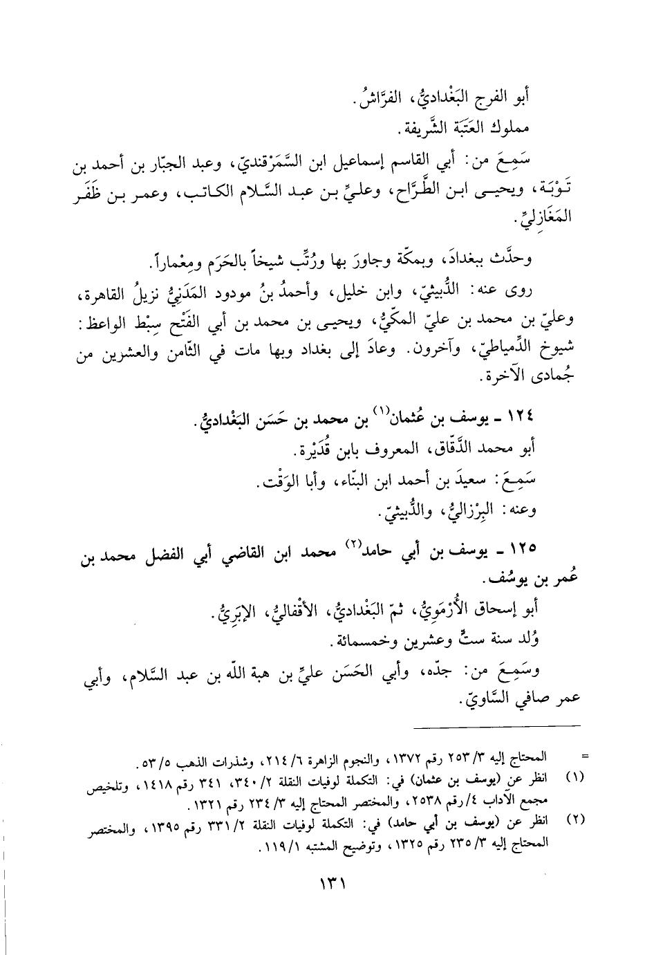 124- يوسف بن عُثْمَان [1] بن مُحَمَّد بن حسن البَغْدَادِيّ.