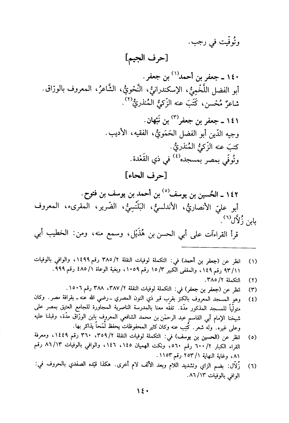 [1] انظر عن (جعفر بن أحمد) في: التكملة لوفيات النقلة 2/ 385 رقم 1499، والوافي بالوفيات 11/ 93 رقم 149، والمقفى الكبير 3/ 15 رقم 1059، وبغية الوعاة 1/ 485 رقم 999.
