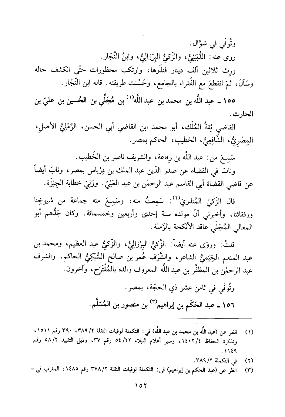 155- عَبْدِ اللَّهِ بْنِ مُحَمَّدِ بْنِ عَبْدِ اللَّهِ [1] بن مُجَلّي بْن الْحُسَيْن بْن عَلِيّ بْن الْحَارِث.