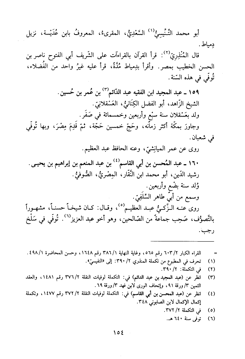 [4] انظر عن (عبد المحسن بن أبي القاسم) في: التكملة لوفيات النقلة 2/ 372 رقم 1477، وتكملة إكمال الإكمال لابن الصابوني 348.