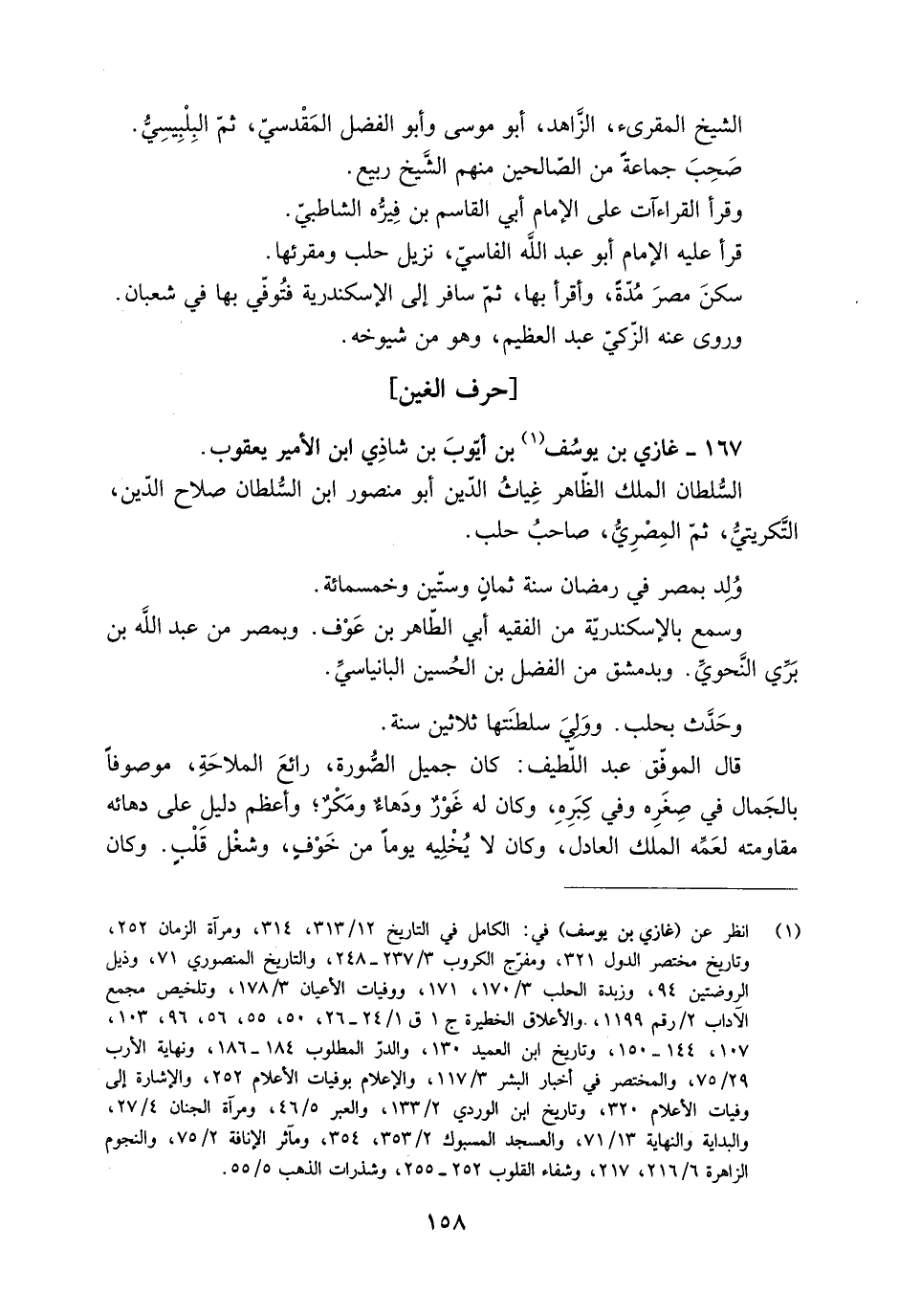 167- غازي بن يوسف [1] بن أيوبَ بن شاذي ابن الْأمير يعقوب.