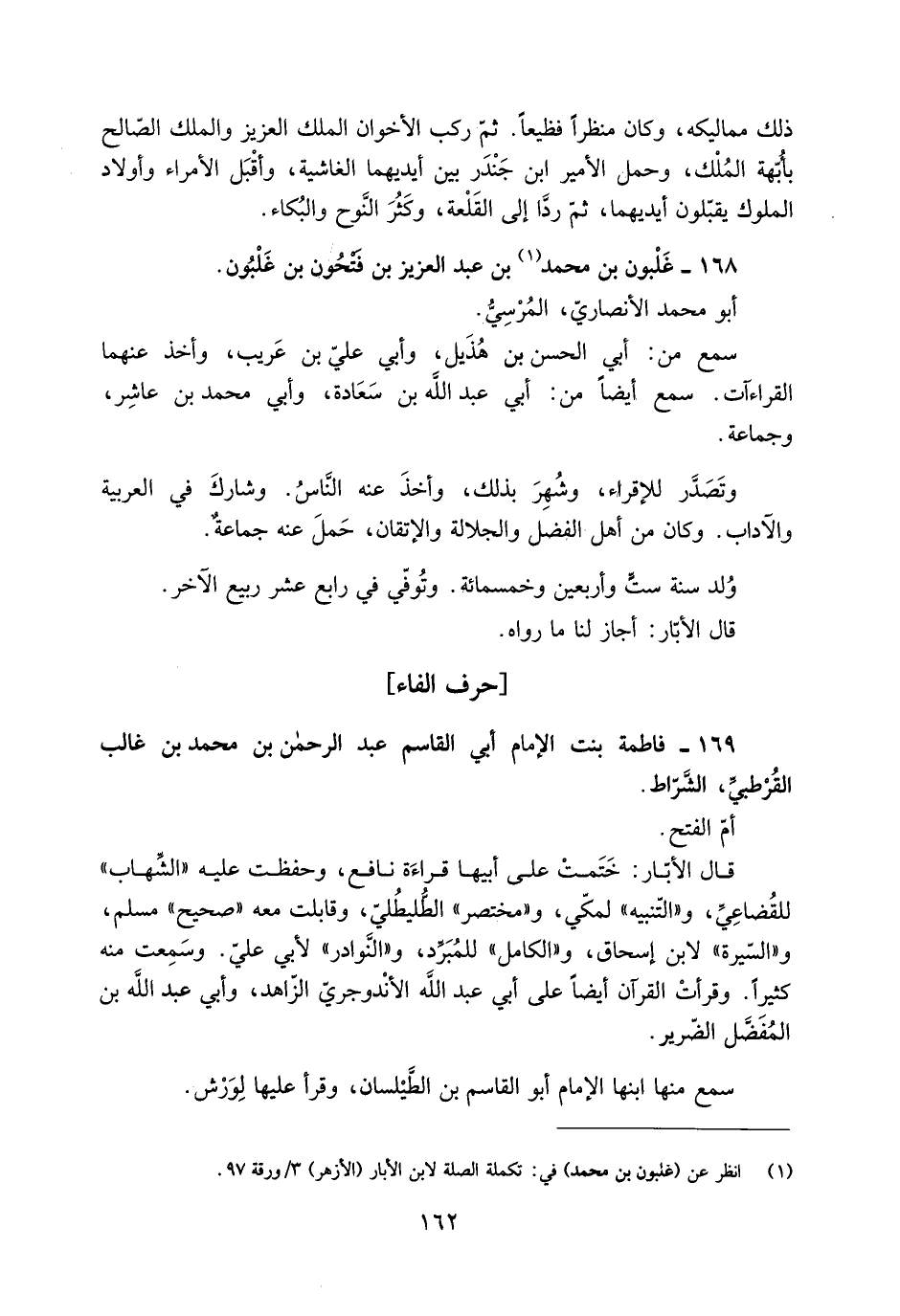 169- فاطمة بنت الإِمَام أَبِي الْقَاسِم عَبْد الرَّحْمَن بْن مُحَمَّد بْن غالب القُرْطُبيّ، الشَّرّاط.