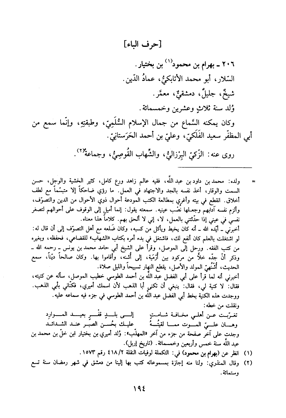[1] انظر عن (بهرام بن محمود) في: التكملة لوفيات النقلة 2/ 418 رقم 1573.