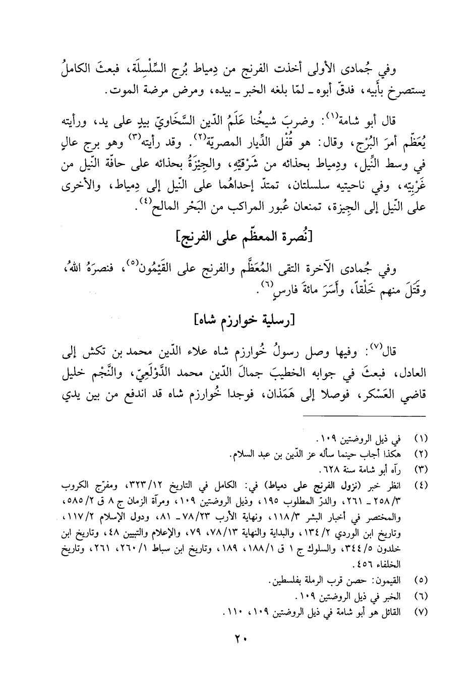 [7] القائل هو أبو شامة في ذيل الروضتين 109، 110.