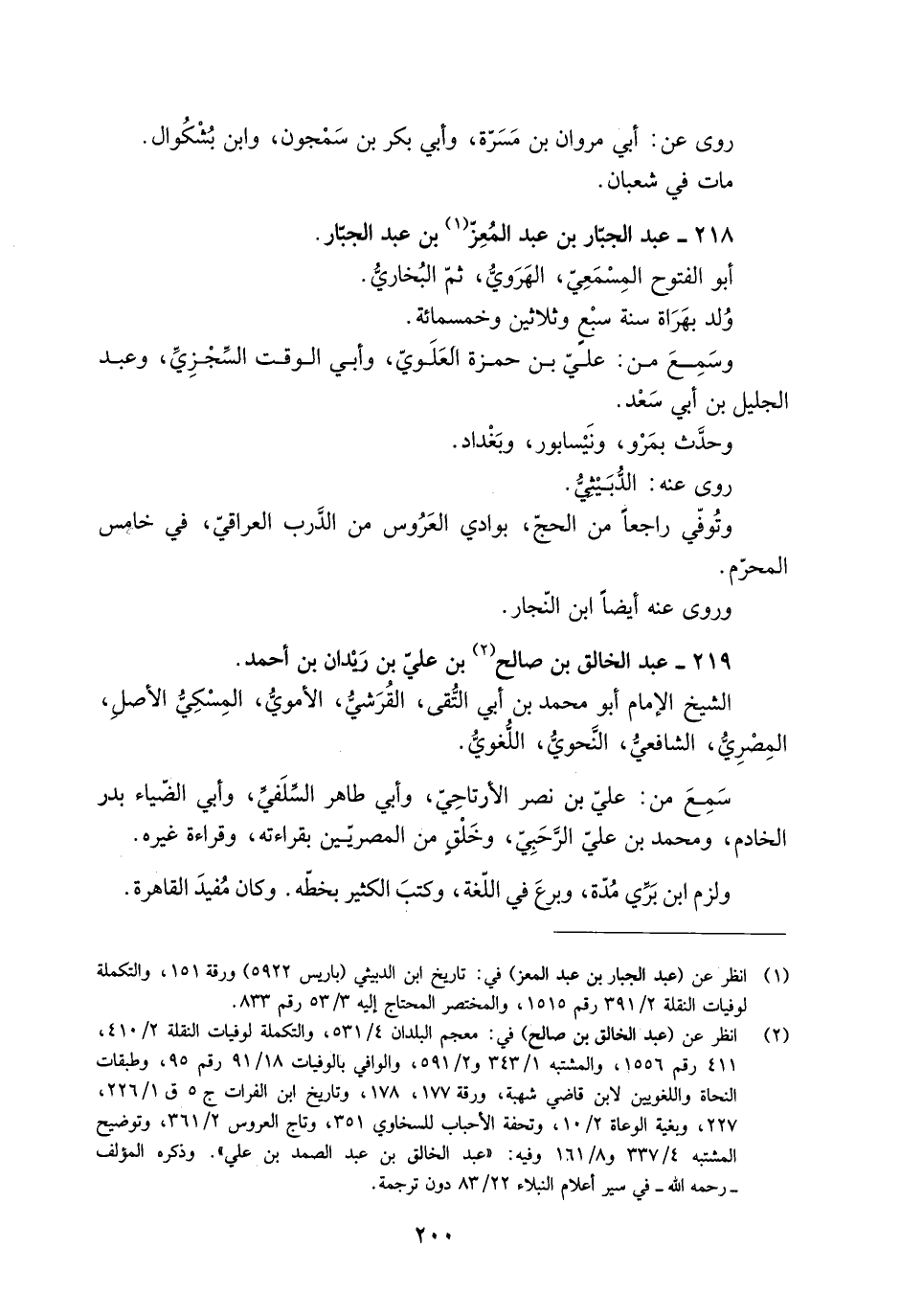 218- عَبْد الجبّار بن عَبْد المعزّ [1] بن عَبْد الجبّار.