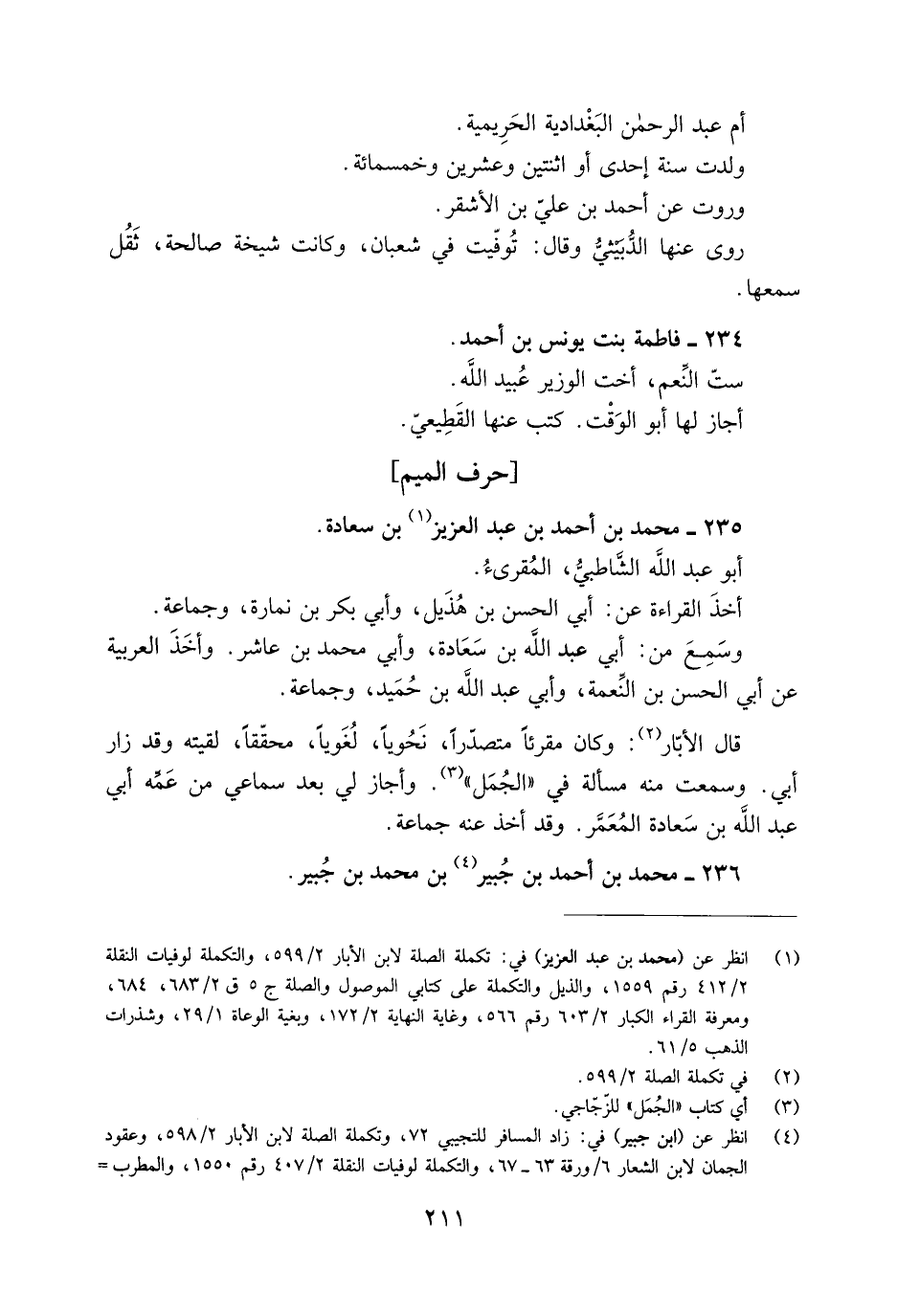 235- مُحَمَّد بْن أَحْمَد بْن عَبْد العزيز [1] بن سعادة.