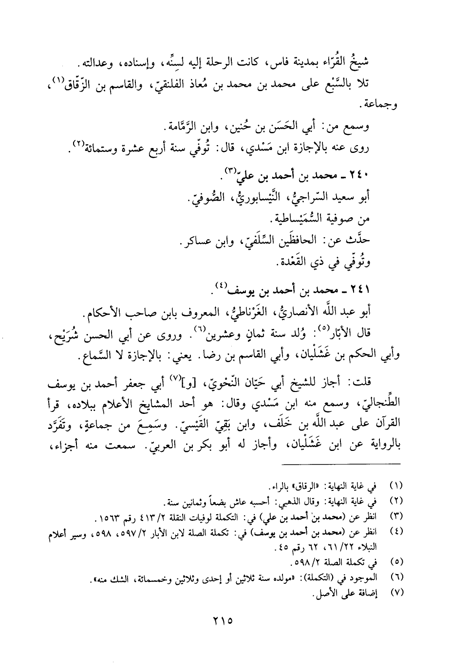 [4] انظر عن (محمد بن أحمد بن يوسف) في: تكملة الصلة لابن الأبار 2/ 597، 598، وسير أعلام النبلاء 22/ 61، 62 رقم 45.