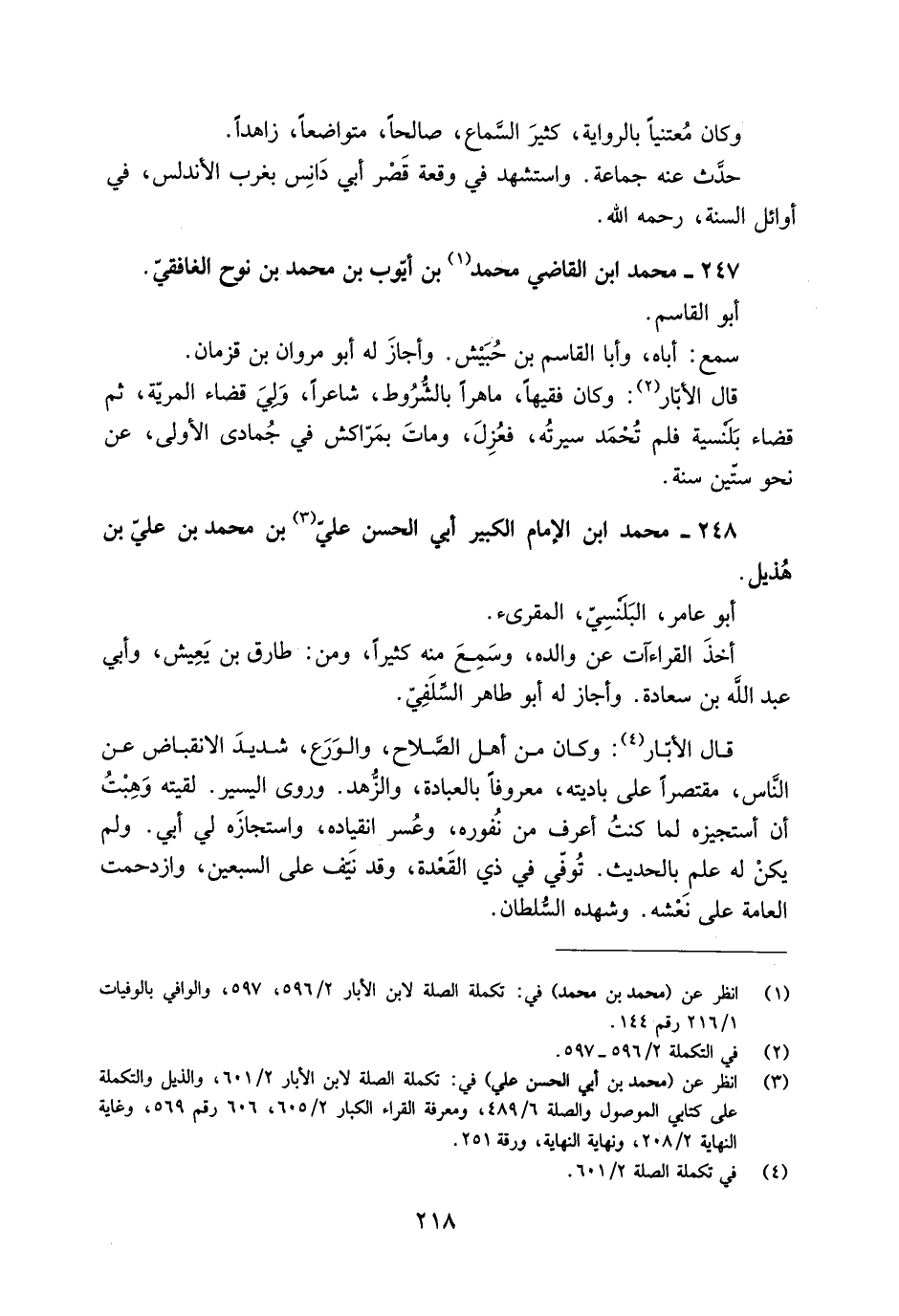 247- مُحَمَّد ابن القاضي مُحَمَّد [1] بن أيّوب بن مُحَمَّد بن نوح الغافقيّ.