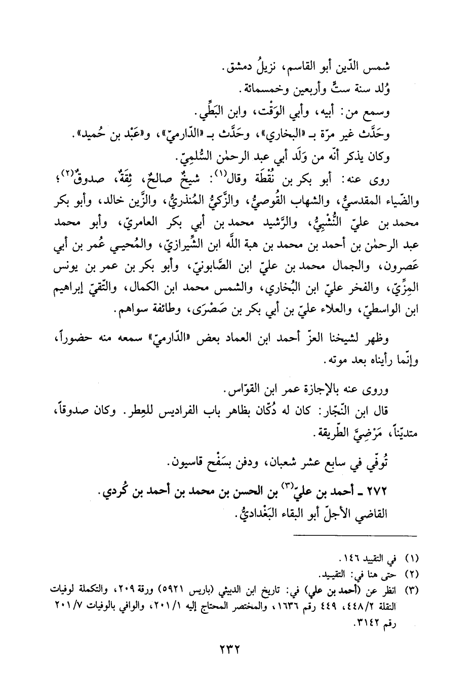 272- أَحْمَد بْن عَليّ [3] بْن الحَسَن بْن مُحَمَّد بْن أَحْمَد بن كُردي.