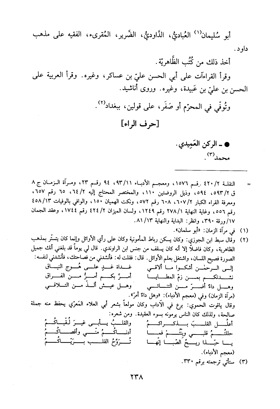 أَبُو سُلَيْمَان [1] العُبّاديّ، الدَّاوديّ، الضّرير، المُقْرِئ، الفقيه عَلَى مذهب دَاوُد.