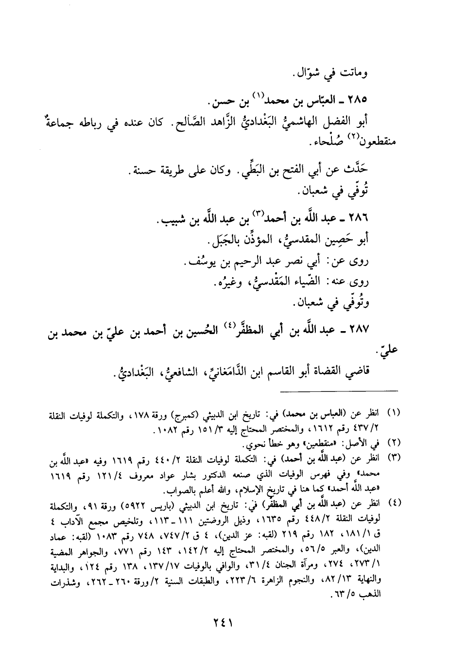 [3] انظر عن (عبد الله بن أحمد) في: التكملة لوفيات النقلة 2/ 440 رقم 1619 وفيه «عبد الله بن محمد» وفي فهرس الوفيات الّذي صنعه الدكتور بشار عواد معروف 4/ 121 رقم 1619 «عبد الله أحمد» كما هنا في تاريخ الإسلام، والله أعلم بالصواب.